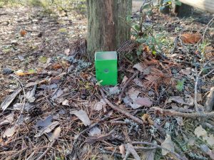 Kyltin paikka urheilukentän kalustovajan luota wc:lle lähtevän polun vieressä.